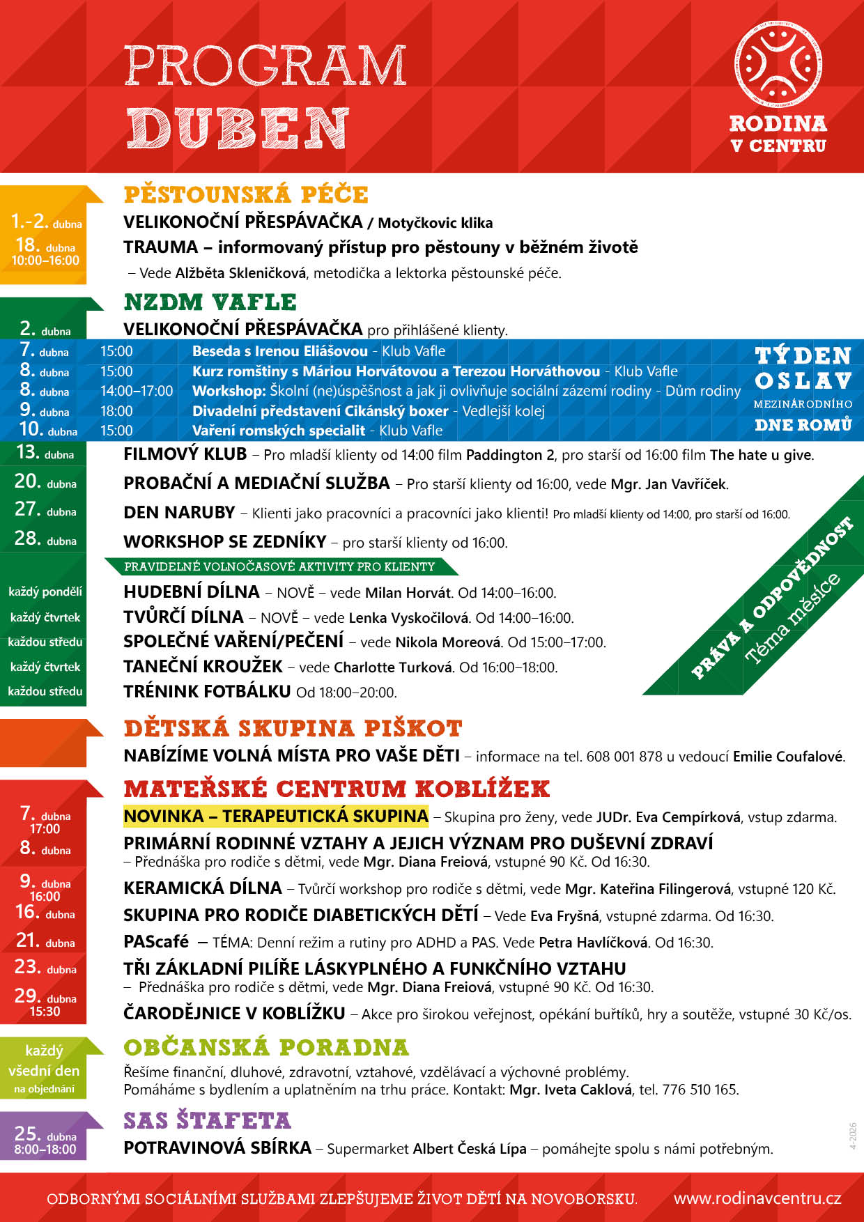 Rodina v centru je zapojena do projektu Potravinové banky Libereckého kraje, z. s. s názvem Potravinová a materiální pomoc nejchudším osobám III, registrační číslo: CZ.03.04.01/00/22_010/0001326 z operačního programu Zaměstnanost +.