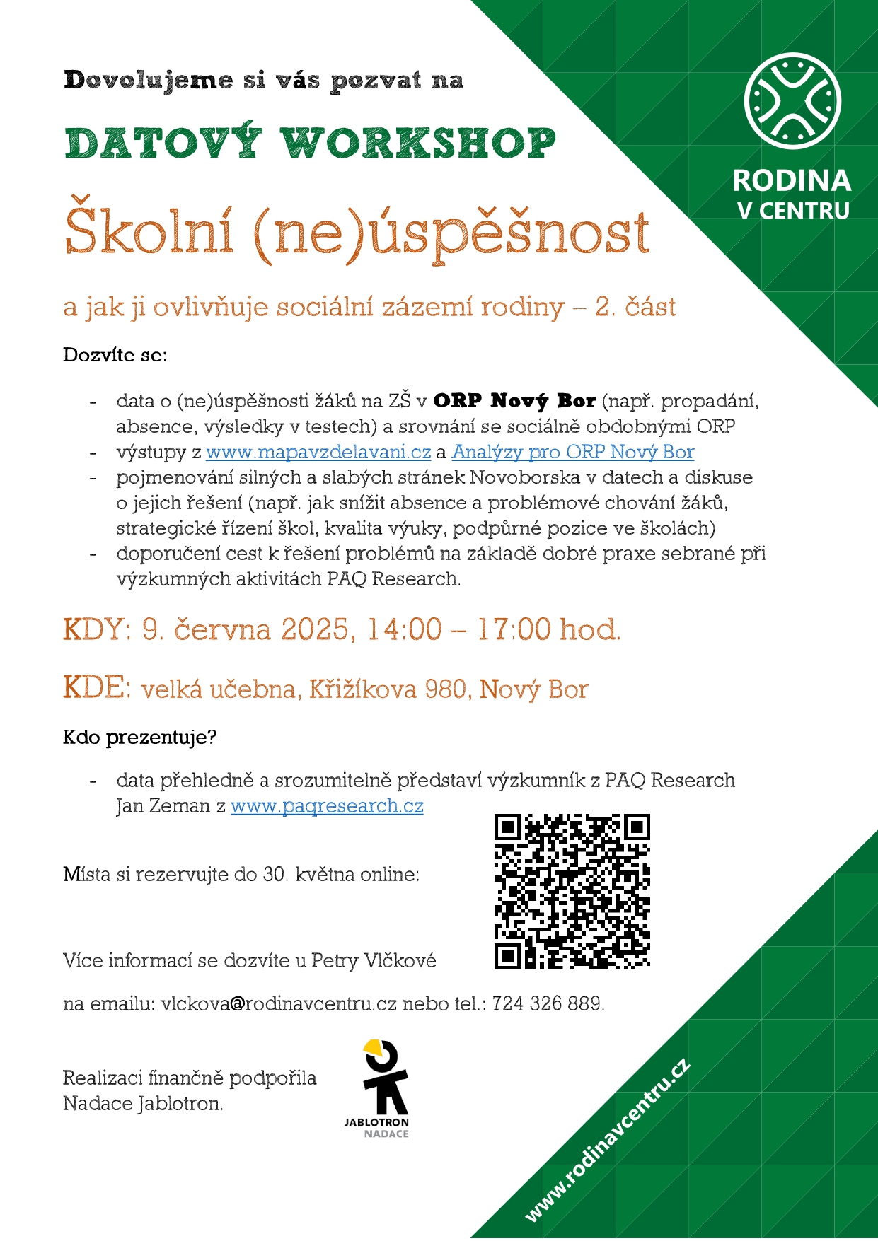 „Školní (ne)úspěšnost a jak ji ovlivňuje sociální zázemí rodiny“ pod vedením Jana Zemana z výzkumné neziskové organizace PAQ Research.