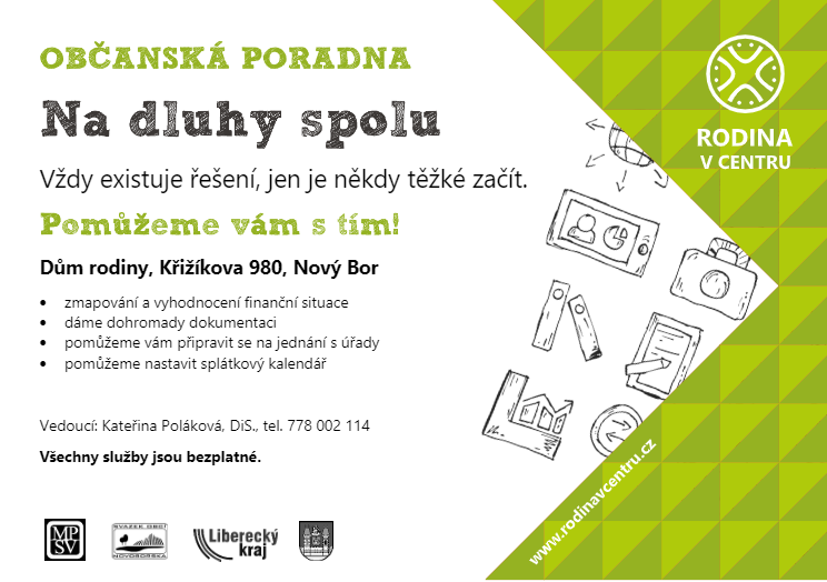 Finanční tíseň, kterou nechceme dovést tak daleko, je třeba řešit včas. Nejlépe hned! Občanská poradna pomůže každému, kdo z jakéhokoliv důvodu svou tíživou situaci nemůže vyřešit sám. Domluvte si schůzku, naše poradkyně se vás ochotně ujmou.