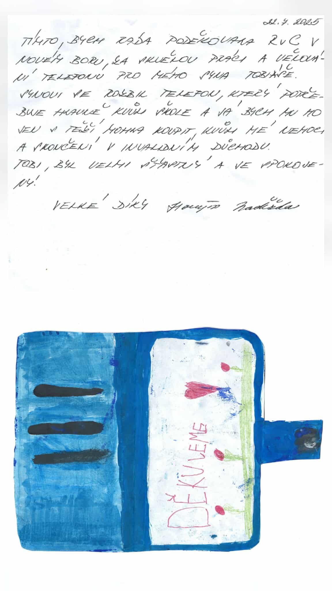 Děkujeme za dobrosrdečné dárce, krásnou zpětnou vazbu od maminky a obrázek od jejího syna.