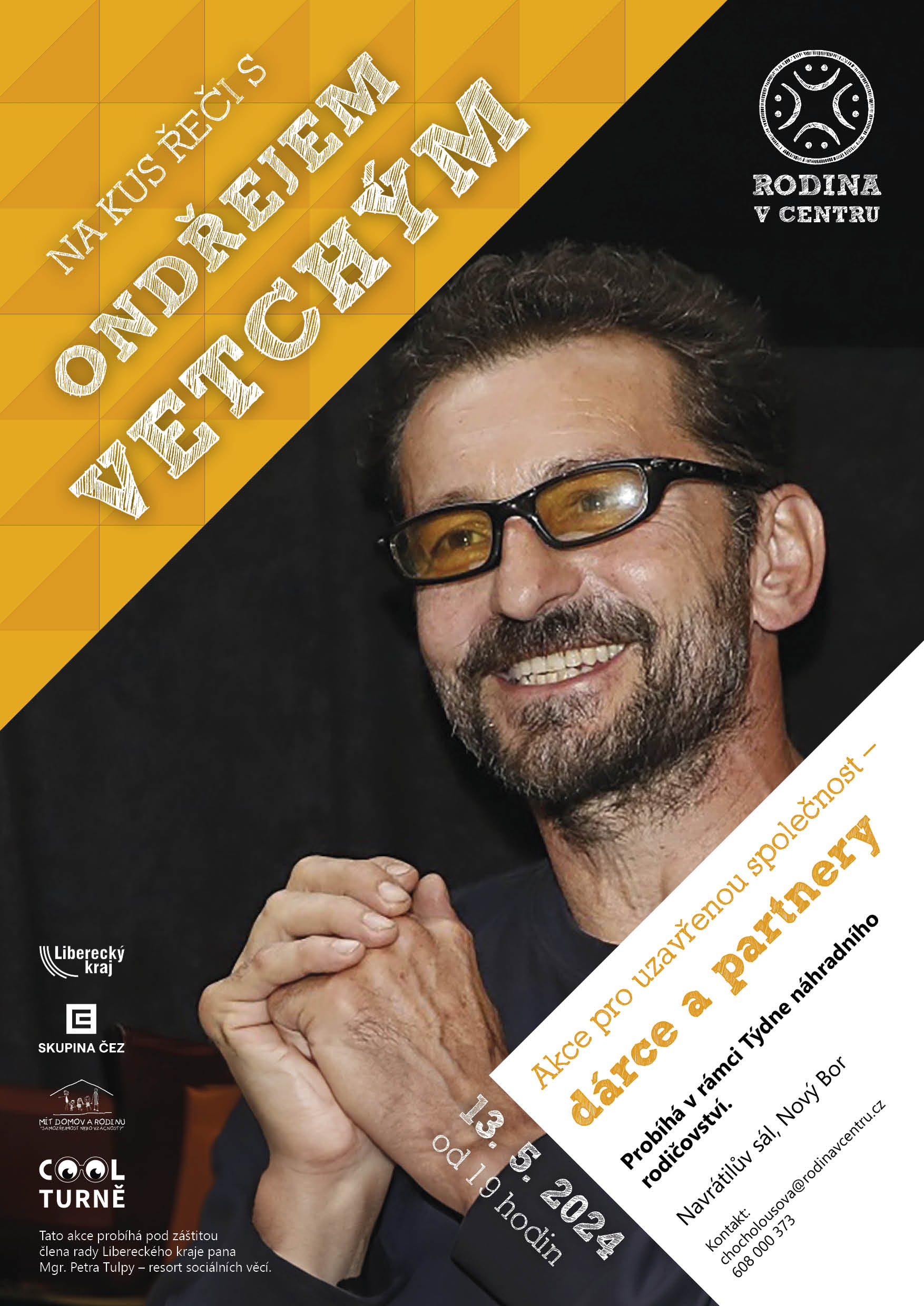 13. 5. 2024 proběhne v Navrátilově sále slavnostní akce „Na kus řeči s Ondřejem Vetchým“.
