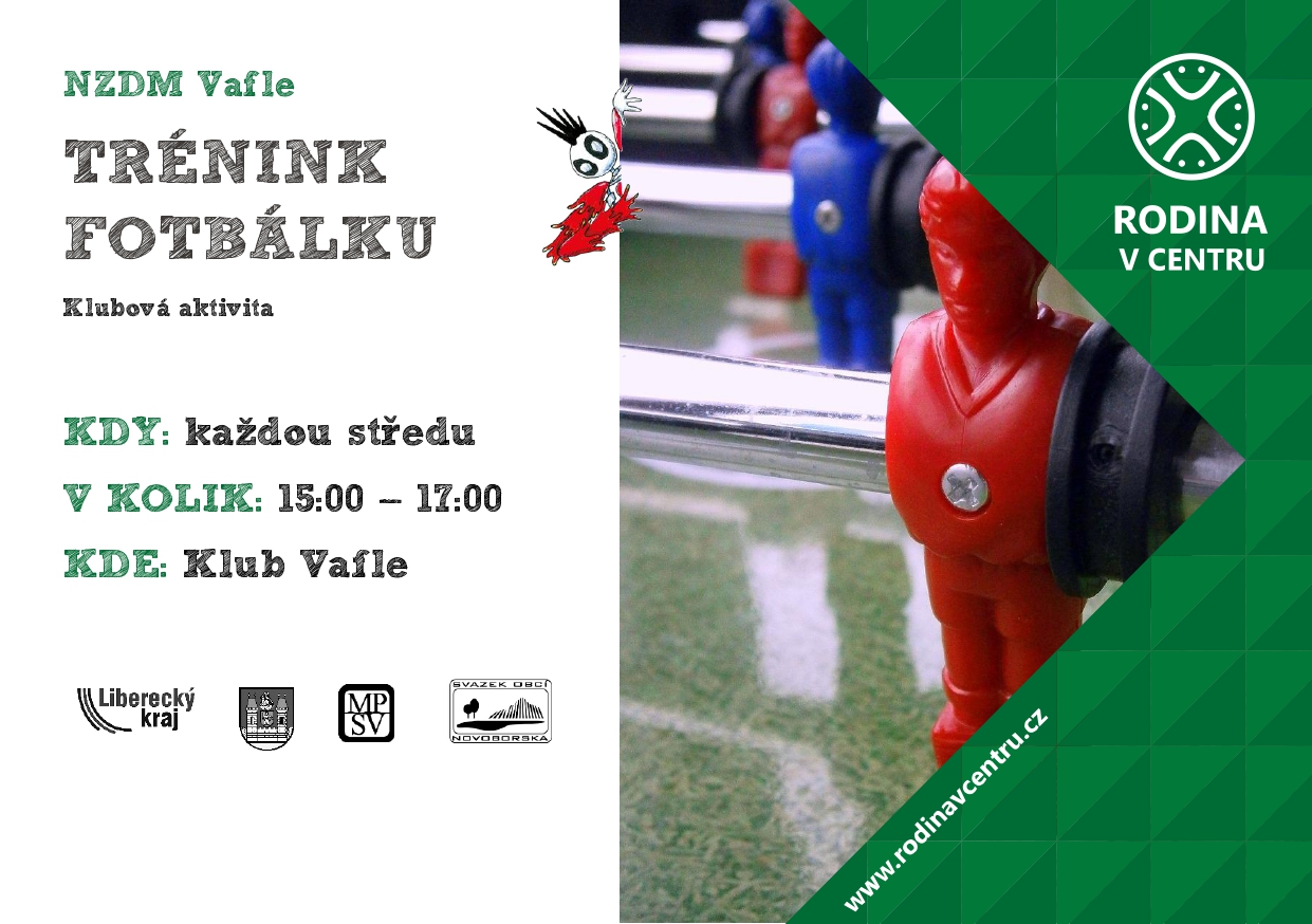 Každou středu nabízíme možnost zúčastnit se tréninku fotbálku všem klientům NZDM Vafle.