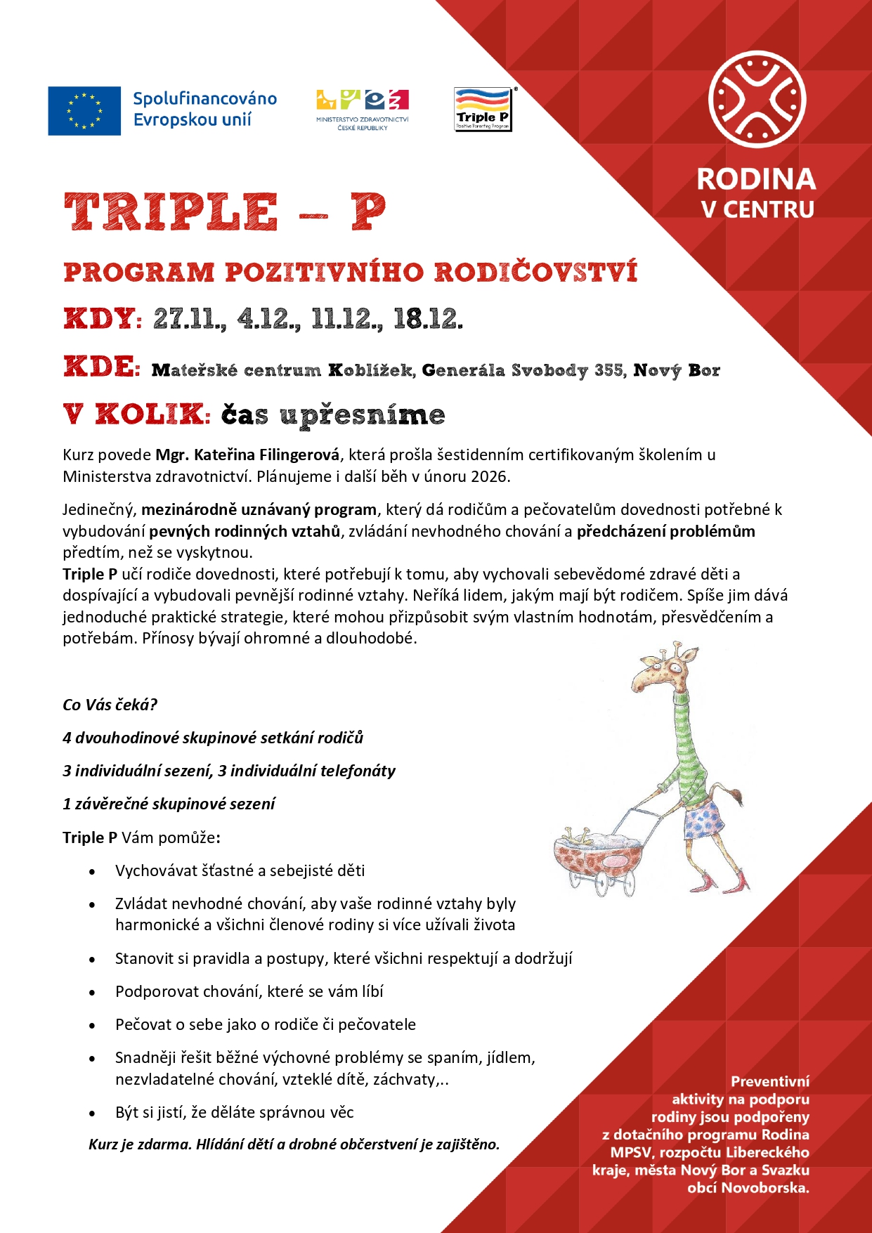 Program pozitivního rodičovství odstartuje na podzim letošního roku v Mateřské centrum Koblížek.